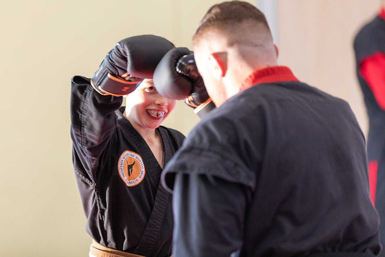 Our Intermediate classes offer a more advanced curriculum, including full-contact sparring from the age of 8 and orange belt upwards. This class hones in on Self-discipline, Balance, Empathy, and Dutifulness. Students will cultivate the ability to set and stick to goals, balance their time and priorities, understand and relate to others, and carry a strong sense of responsibility. These skills are crucial as they progress in both martial arts and life.